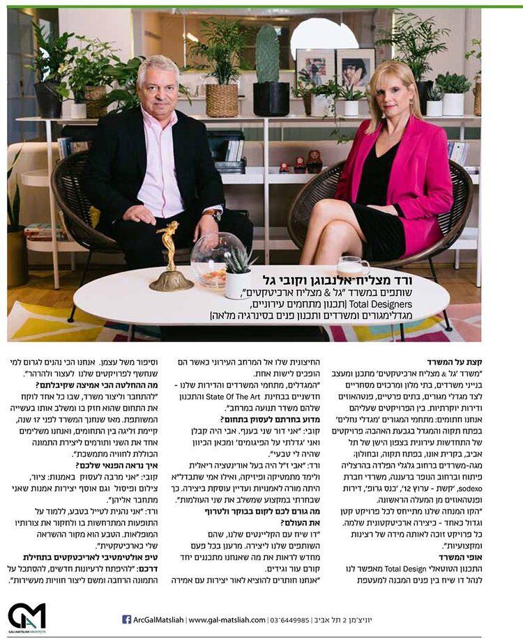 Gal & Matsliah Architects plans and designs office buildings, hotels, and commercial centers alongside residential towers, private homes, penthouses, and luxury apartments.